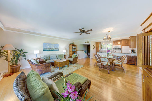 These charming, cottage-style Poipu vacation condos are situated on 35 acres of verdant lawns that reach out to the sands of Kauai’s most popular beach. The lush property is dotted with cactus and orchid gardens that surround the comfortable, breeze-cooled condominiums. Guests enjoy complimentary access to the Poipu Beach Athletic Club where they can lounge at the swimming pool, enjoy a game of tennis and dine at the Cabana Bar & Grill.